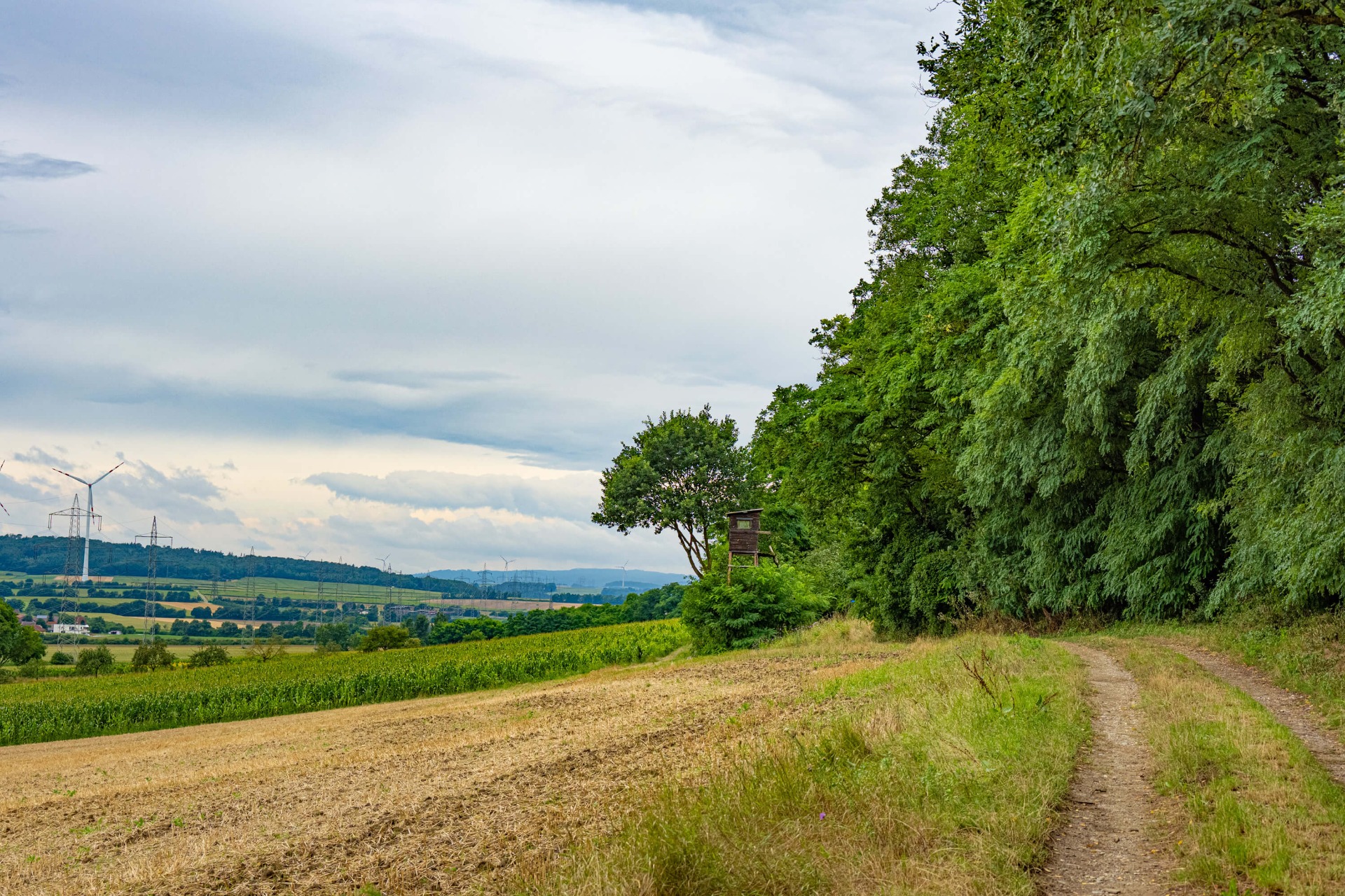 Die Natur gedeiht und blüht, der Wind stürmt und die ersten zaghaften Regentropfen fallen vom Himmel. Ein Reh sucht das Weite. Wir genießen die Ruhe. Ziehen die frische Luft in unsere Großstadtlungen. Und siehe da, ein Wanderer überholt uns und wundert sich, dass er jetzt nicht mehr der Letzte für den heutigen IVV-Wandertag auf der blauen Strecke ist.
