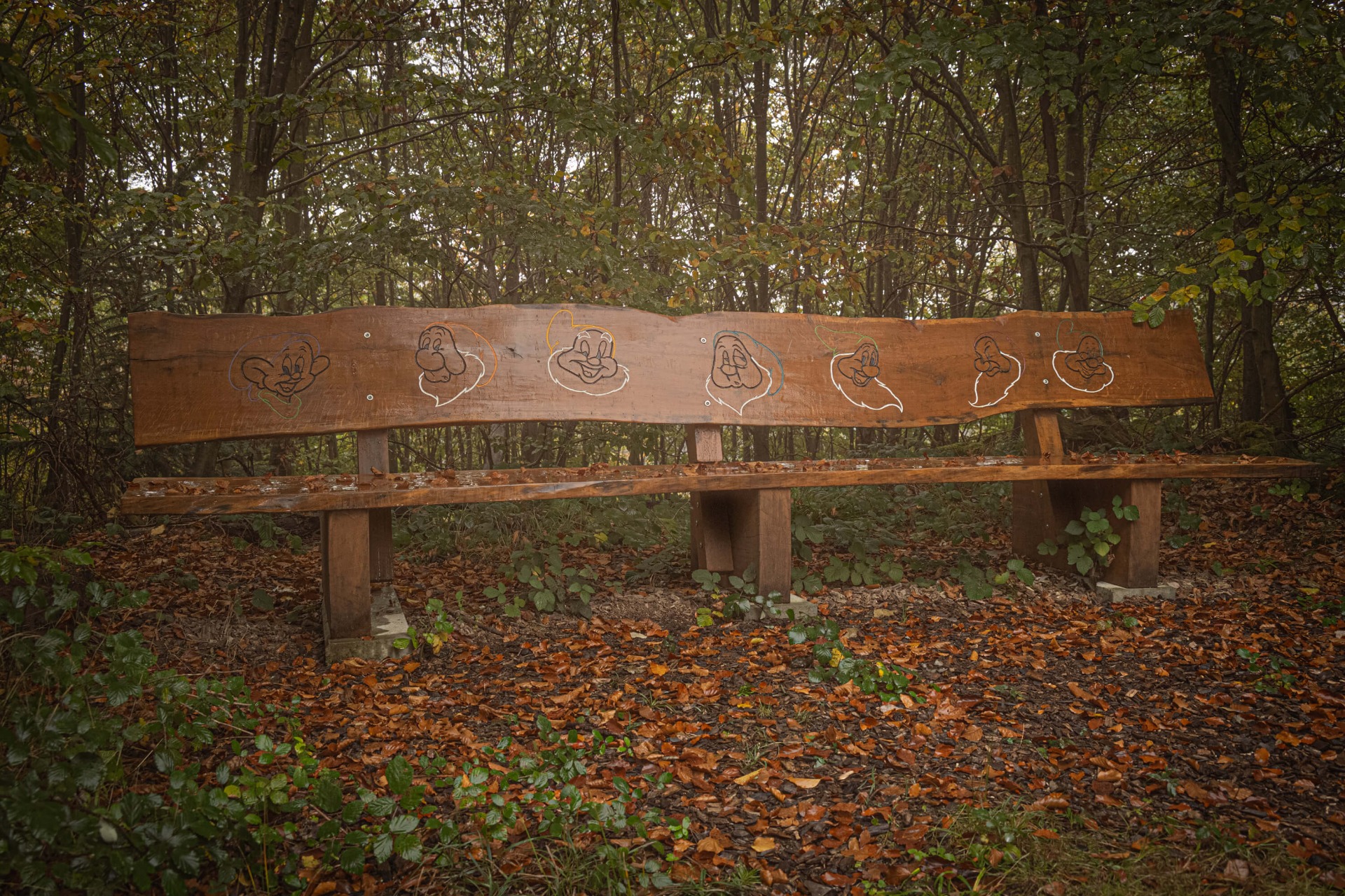 Auf einer Bank wartend begegnen wir den sieben Zwergen. Wir versprechen im dichten Nebel nach dem Schneewittchen Ausschau zu halten und rutschen mehr als wir gehen in einem mystisch dunklen Wald bergab und stehen plötzlich am Ausgangspunkt.
